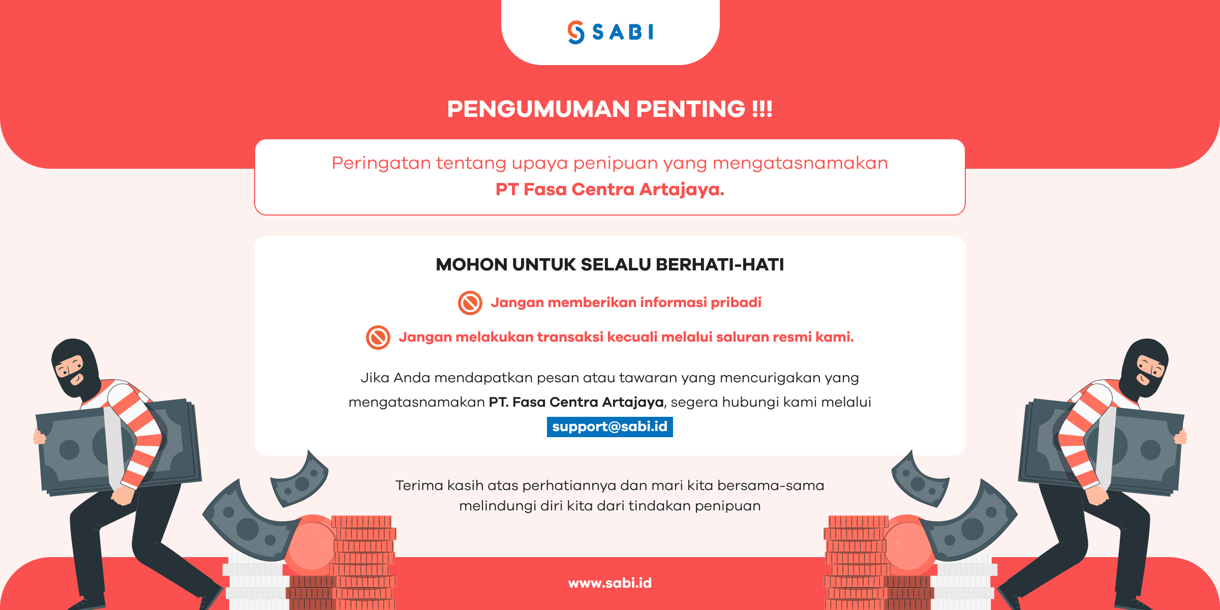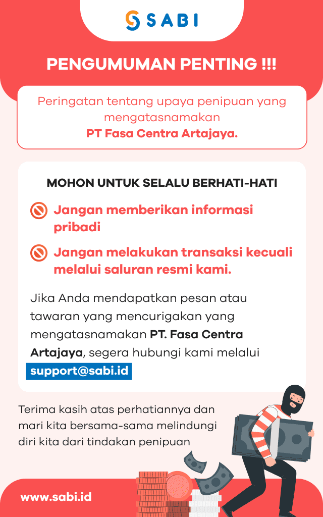 Untuk informasi lebih detail silakan klik tombol livechat di pojok kanan bawah atau email ke support@sabi.id